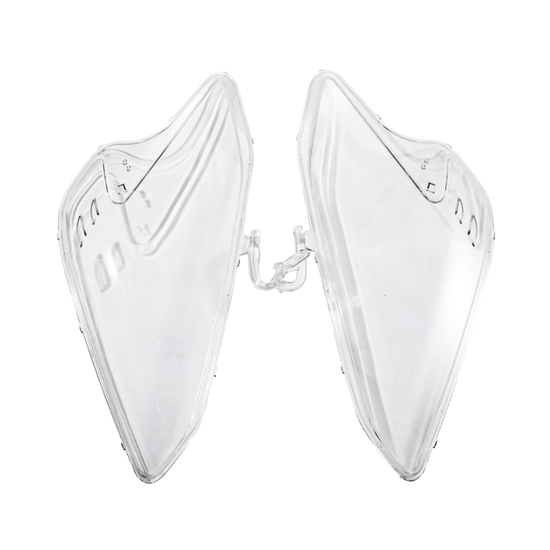 Automotive tail lamp colored lens made from high-transparency PC or PMMA material, designed for precise light filtering in red, white, and amber output zones. It ensures excellent optical clarity while providing strong resistance to UV radiation, weather aging, and impact. The lens maintains stable color performance and uniform light diffusion, making it suitable for modern automotive rear lighting systems that require both safety signaling and aesthetic design.